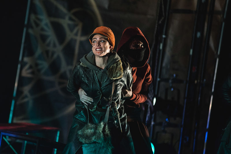 Contamos para ello con un músico en escena que crea un sugerente ambiente sonoro lleno de ritmos y sonidos evocadores y con una estética en la escenografía, el vestuario y la luz que busca los claroscuros, las capuchas que cubren o descubren, los objetos multifuncionales que junto con los actores construyen cárceles o palacios, masas en movimiento o angustiosos espacios vacíos. [dt_gap height=»30″ /]